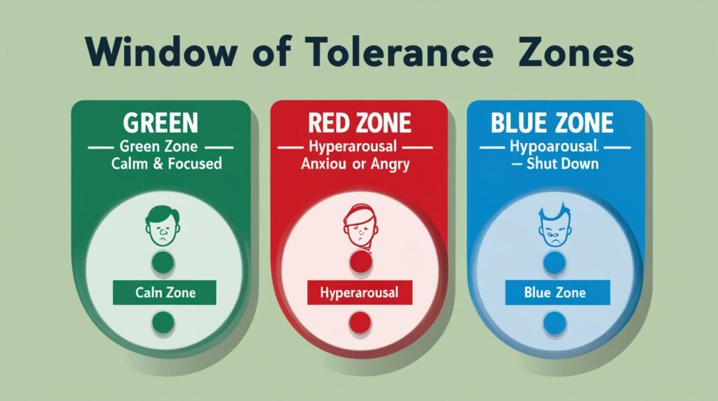 - 🔴 Hyperarousal Zone – Overwhelmed, angry, anxious